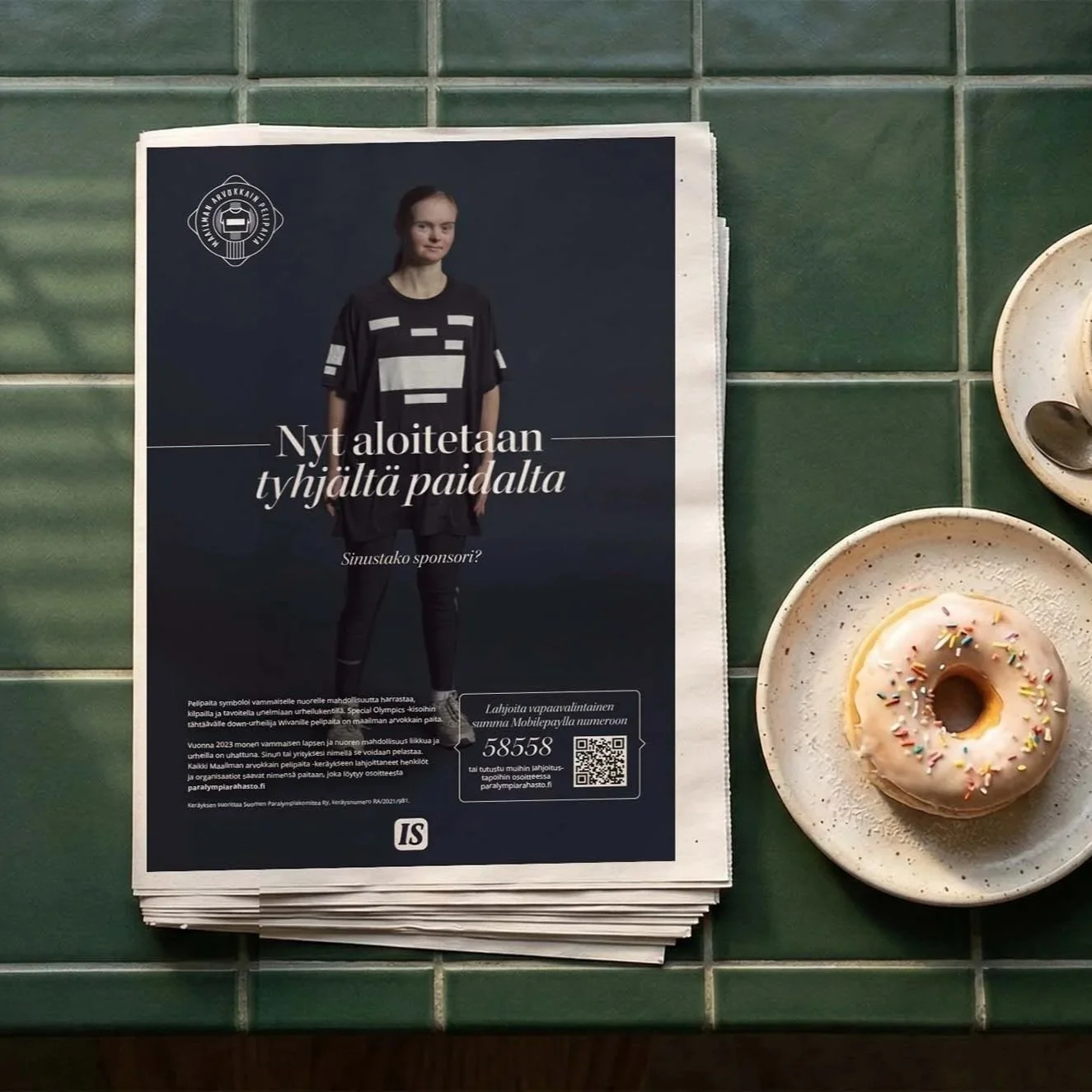 In Finland sponsorship logos on a jersey might be an eyesore, but they also mean that there is money. The Paralympic Committee needed a symbol quickly, to show the country that they didn’t have any money, so I had an overnight idea of a jersey with stripped away sponsor logos.